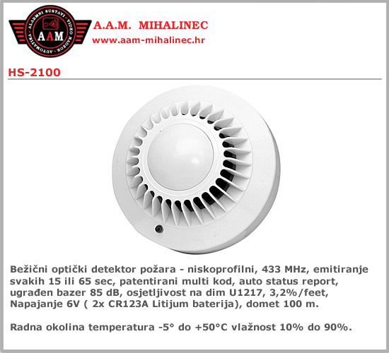 - Bežični optički detektor požara - niskoprofilni