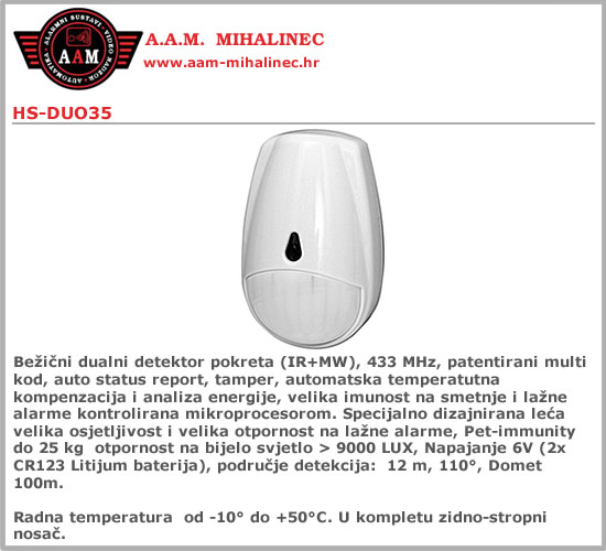 - Bežični dualni detektor pokreta (IR+MW)