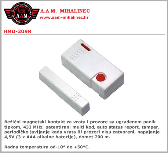 - Bežični magnetski kontakt za vrata i prozore sa ugrađenom panik tipkom